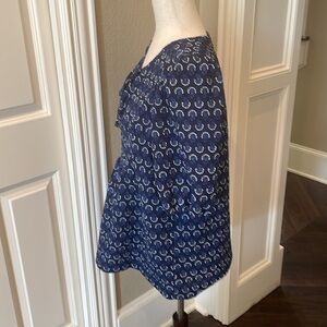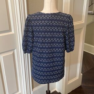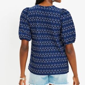 Loft Floral Puff Sleeve Tie Neck Top Nvy/White M