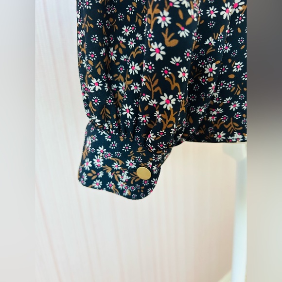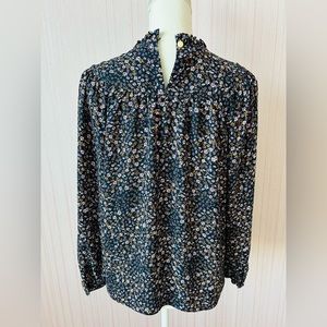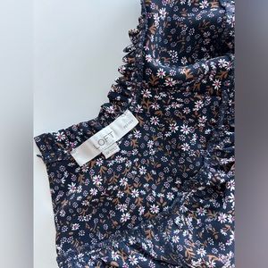 Loft Floral Ruffle Neck Bib Blouse