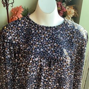 Loft Floral Ruffle Neck Rib Blouse