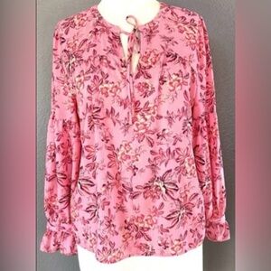 Loft Floral Ruffle Tie Neck Top Blossom Blouse Pink Floral Career and Casual