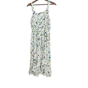 Loft Floral Ruffle Sleeveless Button Tie Waist Midi Sundress Multicolor Size 4