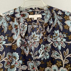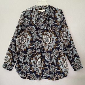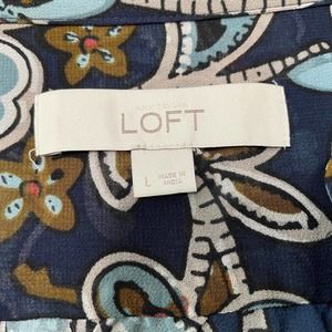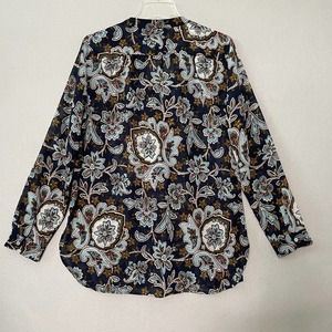 Loft Top Popover Women Large Floral Sheer Tunic Slit Long Sleeve Boho Career