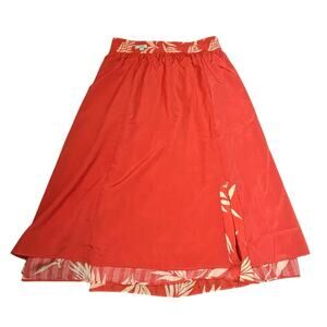 Loft Floral Smocked Midi Skirt Womens Size SP Soft Orange Lined Flowy Breezy