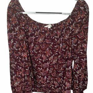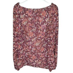This Loft blouse, crafted from polyester, features a charming peplum paisley floral print. The long sleeves and elastic neckline add a touch of vintage elegance, making it a versatile wardrobe addition. Its flowy and lightweight fabric ensures comfort while exuding timeless style. Pair it effortlessly for casual or semi-formal occasions.