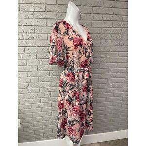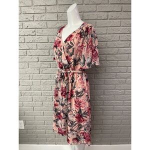 Loft Floral Surplice Neckline Dress With Flutter Sleeve Size M