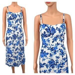 Loft Floral Sweetheart Sleeveless Midi Dress Sz 6P Cottagecore Milkmaid Coastal