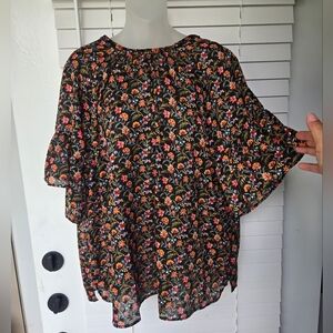 Loft Floral Tie Back Blouse Semi Sheer Sz XL