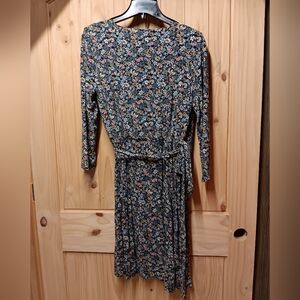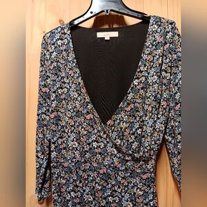 Loft Elegant floral wrap dress with a deep V-neckline. Perfect for any occasion. ties at waist on side or front.