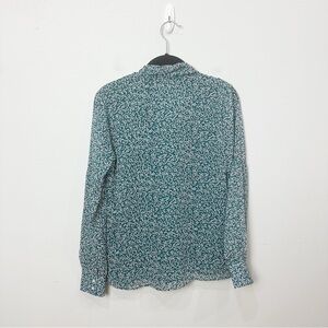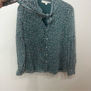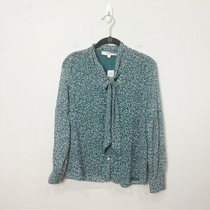 Loft Garden Tie Neck Blouse Green Floral Fluid Draped feminine