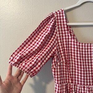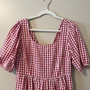 Loft Gingham Dress Buffalo Plaid Puff Sleeve Peasant Boho Red 6 Country Cowgirl