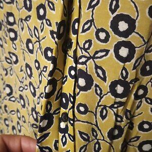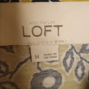 Loft Gold Navy Blue Floral Knit Button Down Medium