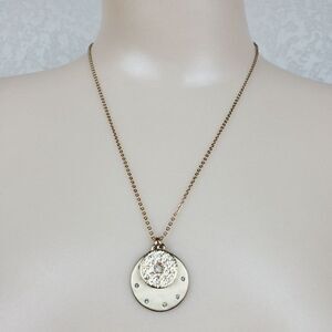 Loft Gold Tone Double Pendant Round Circle Crystal Rhinestone Pendant Necklace