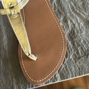 Loft - Step out in style with these elegant gold and brown sandals. Perfect for any occasion, these shoes offer both comfort and fashion. Size 6