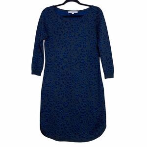 Ann Taylor Loft Gray & Blue Cheetah Animal Print 3/4 sleeve dress. Size small with measurements in the pictures. Gently used condition with no rips or stains.