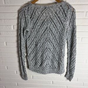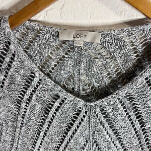 Loft Gray Cotton Open Knit Crochet Fall Long Sleeve Sweater, Women’s Size XS