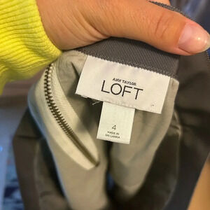 Loft Gray Floral Silk Blend Ribbon Waist Skirt
