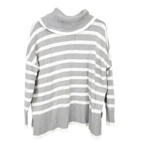 Loft Gray White Striped Turtleneck Poncho Knit Sweater Sz S