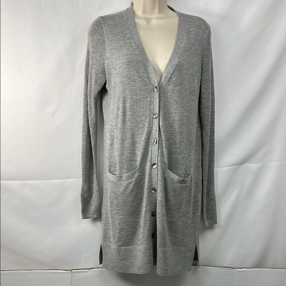 Loft Gray long button front cardigan sweater with pockets EUC size small