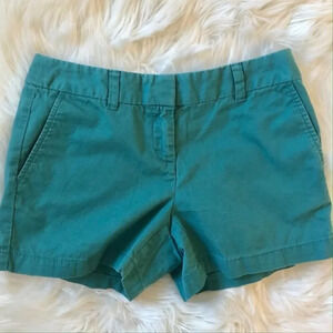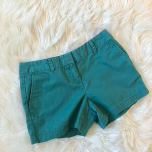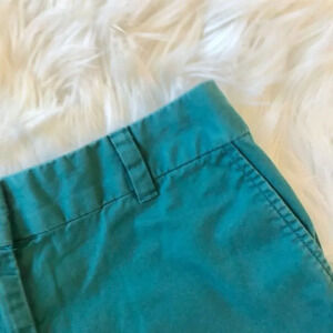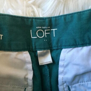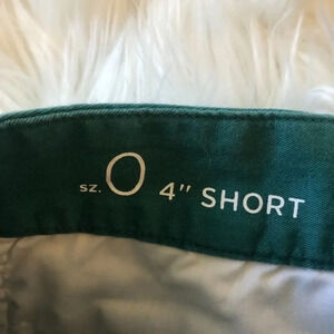 Fitted cotton shorts by Loft Size 0 Emerald green color 100% Cotton Very good pre-owned condition Waist 14.25" across Rise 8" Inseam 4"