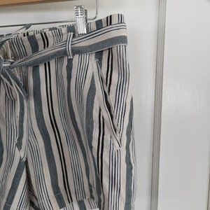 Be summer ready with these adorable striped shorts by Loft. Sage green, black and cream stripes with cute belted tie. Hip and back pockets. 98% cotton and machine washable. Size 6 with flat lay measurements of 32" waist, 10" rise and 4" inseam. EUC with no wear, tears or stains.