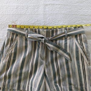 Loft Green Black Cream Striped Cotton Shorts w/ belted tie