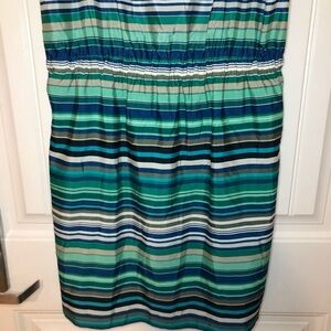 Loft Green & Blue Striped Sleeveless Dress. Has some elastic around the waist. In great preowned condition. No visible signs of wear. Feel free to make a reasonable offer through the offer button!