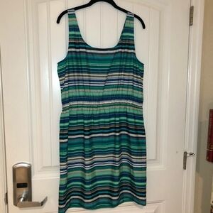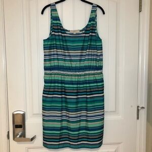 Loft Green & Blue Striped Sleeveless Dress Size Large