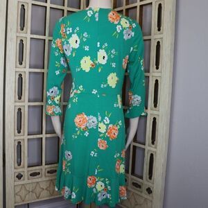 Loft Green Floral Faux Wrap front Soft Lightweight Dress Size 8 New