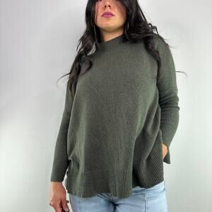 Loft Green Mock Neck Knit Fuzzy Oversized Sweater
