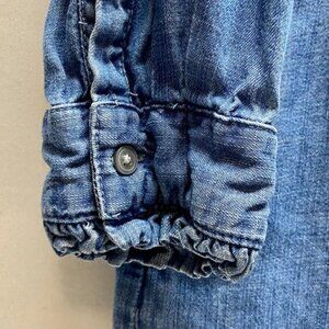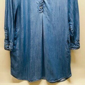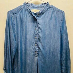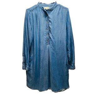 Loft Half Button Shirt Dress Women's Medium Blue Denim Chambray Long Sleeve GUC