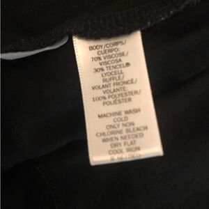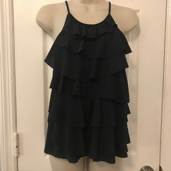 Solid black. Ruffle front Loft Halter Only worn a handful of times and in excellent condition! Please see pics for material info (LR)