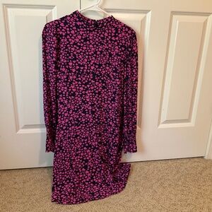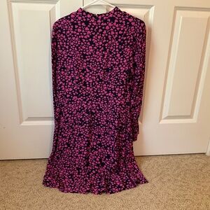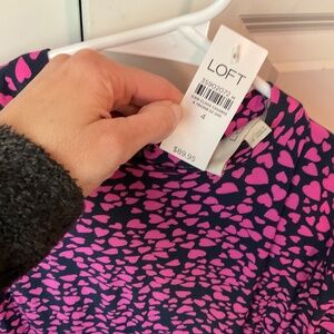 Loft Heart Smocked Ruffle Cuff Flare Dress, NWT