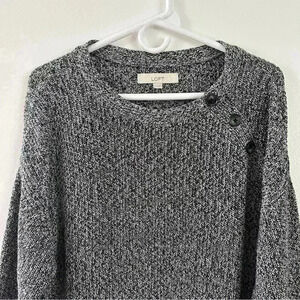Loft Heather Black Button Neck Sweater Women’s Sz Large Long Sleeve Shawl Mock. In great preowned condition.