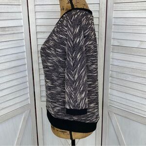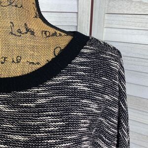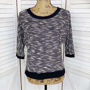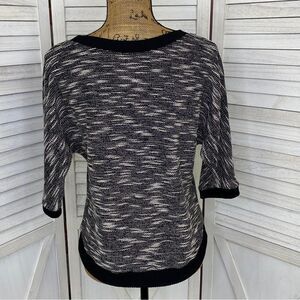 Loft Heathered Loop Knit Half Sleeve Sweater Black Cream XS