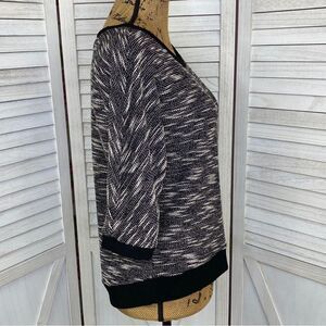 Ann Taylor Loft Heathered Loop Knit Half Sleeve Sweater Black Cream
