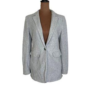 Loft Herringbone Dove Grey Longline Cotton Classic Blazer