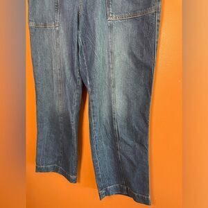 High Rise Utility Straight Jeans in Dark Stone Wash. Womens Waist Size 32.