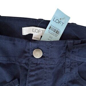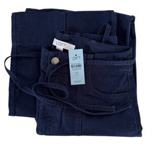Loft High Rise Wide Leg Tie Front Navy Blue Cotton Pants NWT
