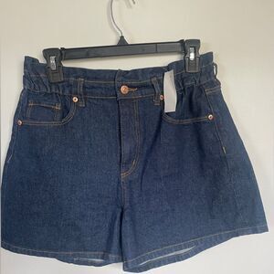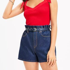 Loft High Rise Paperbag Pull On Denim Shorts in Dark Rinse Size 27/4 NWT