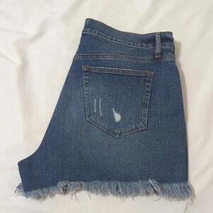Loft High Waist Cut Off Lightly Distressed Denim Short, Color Blue Size 30/10