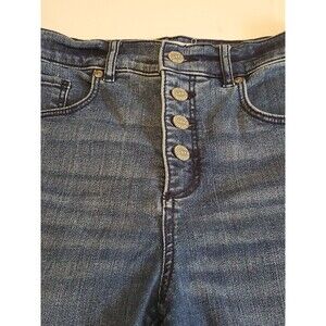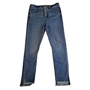 Elevate your denim game with these classic blue skinny jeans from LOFT. Crafted with medium wash distressed denim fabric, these jeans feature a high waist, button fly, and frayed hem. Designed for women, these jeans are size 6 and have a regular fit. The denim fabric is made of denim material that is long-lasting and durable. These jeans are perfect for any casual occasion, and they can be paired with a variety of tops and shoes.