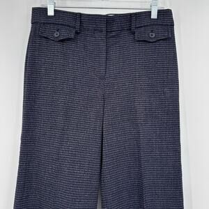 Loft Houndstooth High Waist Trouser Leg Dress Pants Navy Blue Gray Womens Size 8