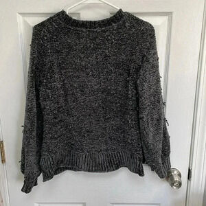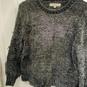 Slate gray almost black distressed super soft and warm cropped sweater! Made to look distressed and effortless. I love this sweater but need to rotate my closet.