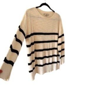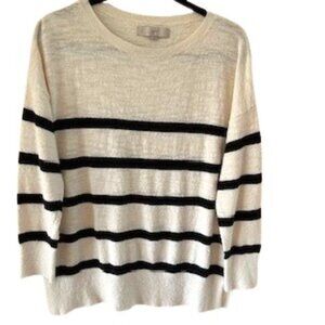 Loft Ivory & Black Striped Lightweight Sweater - Large
