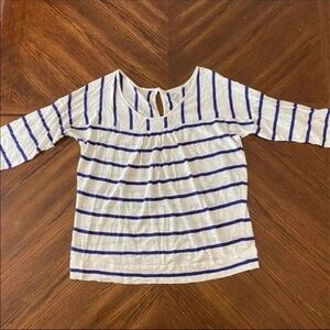Ann Taylor Loft Ivory and blue Striped Knit Top