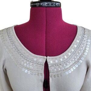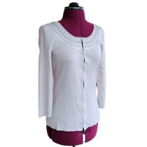 Loft Ivory Sequin Neckline 3/4 Sleeve Lightweight Cardigan sz XS