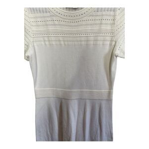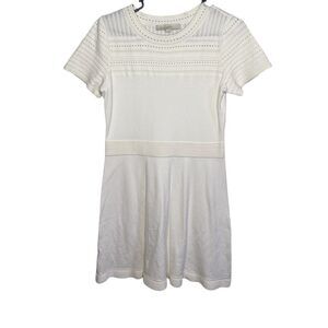 Loft Ivory Textured Yoke Flare MiniSweater Dress Size Small