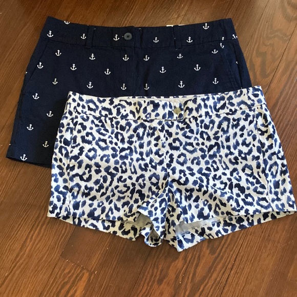 NWT loft anchor shorts navy blue size 10, worn once JCrew animal print cream and Navy size 10 Excellent condition.