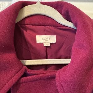Worn once - like new. Beautiful magenta color. Can button on the right or left hand side. Pockets are non-functional. Very warm jacket with collar.