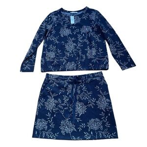 Loft Jacquard Skirt and Sweater Set Textured Dark Blue Floral Cotton blend Sz L